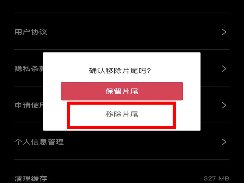 3、在弹出来的提示框中点击“移除片尾”即可。