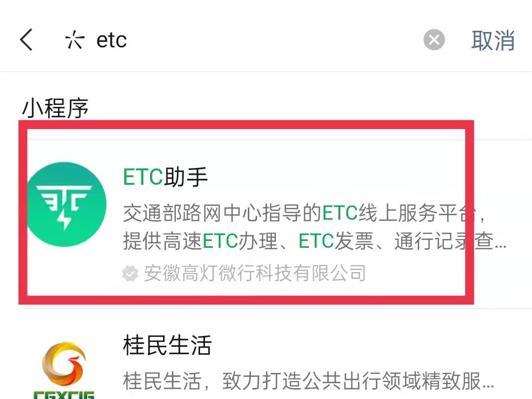 微信办理ETC的具体操作如下:1、在微信主页下拉,在小程序中搜索ETC。2、在搜索出来的结果中点击“ETC助手”。3、在打开的界面点击下方的“新办”,之后点击立即办理。4、按指引填写资料,提交信息即可。