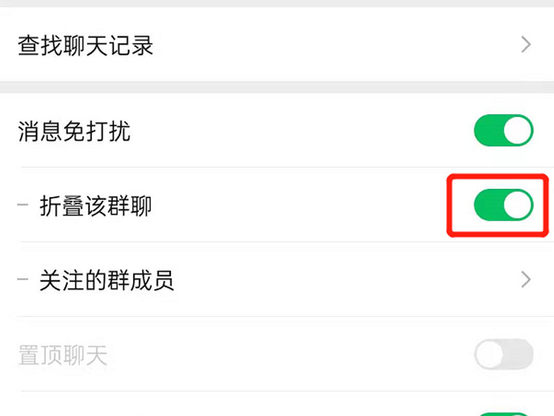 微信关闭折叠功能的具体操作如下:1、打开手机微信app,在聊天界面找到“折叠的群聊”,点击进入折叠的群聊界面。2、在折叠的群聊界面点击要取消折叠的群,进入群聊天界面。3、在群聊天界面点击右上角三点标志,进入群聊设置。4、在群聊设置中把“折叠该群聊”关闭即可。