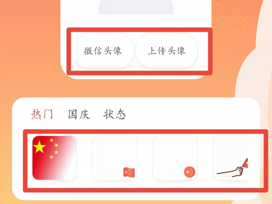 2、点击“微信头像”,选择头像下方的爱国图样。