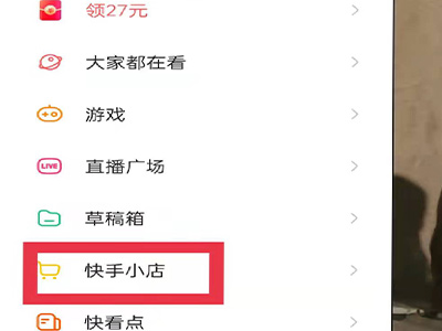 2、点击三横图标下拉页面中的“快手小店”。