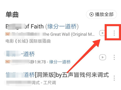 2、点击歌曲右边的三竖点图标。
