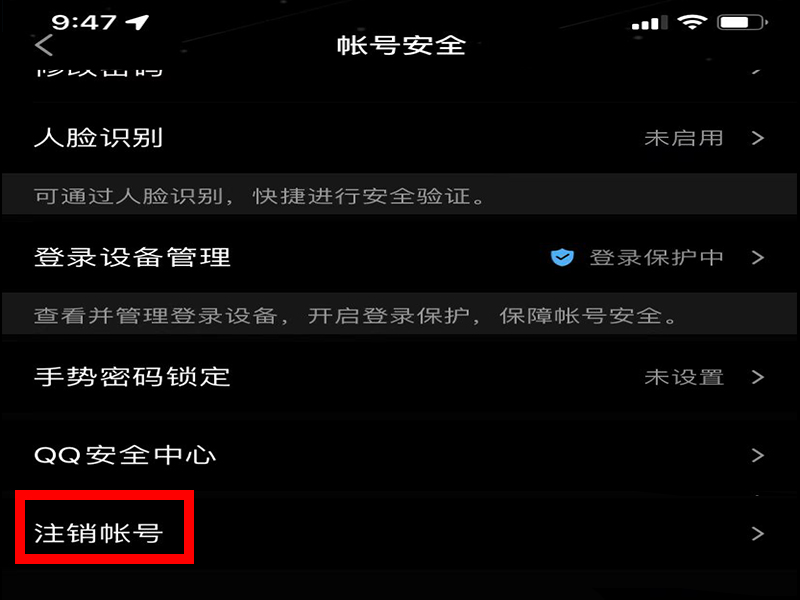 4、进入“账号安全”界面后,点击界面下方的“注销账号”。