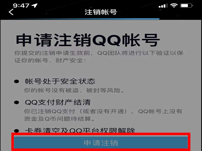 5、在弹出来的“注销账号”界面中,点击“申请注销”即可。