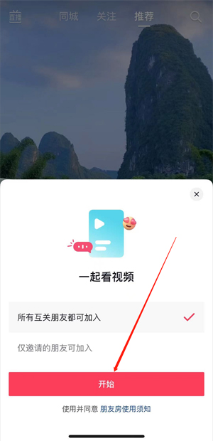 抖音更新了依然是有一起看功能的,打开方法如下:1、打开抖音app。2、在观看视频的页面中点击“分享”按钮。3、点击“一起看视频”。4、选择好对应的权限后点击“开始”即可。