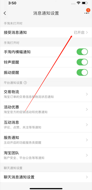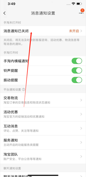 淘宝的消息栏怎么没有显示