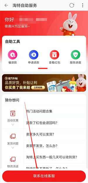 3、点击“联系在线客服”。