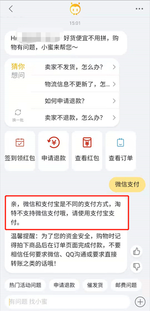 淘宝特价版能用微信支付吗