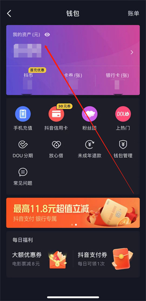 2、点击“钱包”。