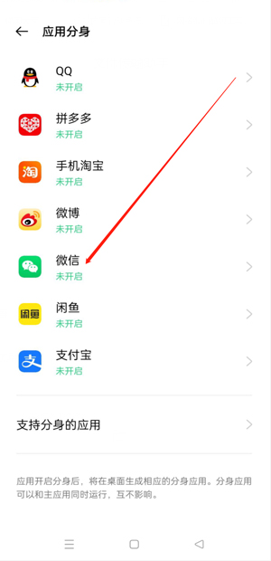 微信分身的意思就是微信的分身,打开之后可以在手机上同时登陆两个微信。打开步骤如下:1、打开手机的“设置”,进入“应用管理”。2、点击“应用分身”。3、选择微信。4、点击“开启应用分身”。5、返回桌面即可看到微信分身。