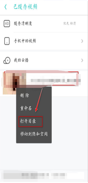 3、点击“已缓存视频”。