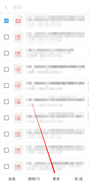 5、勾选视频,点击“更多”。