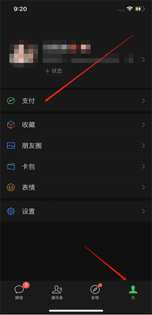1、打开微信点击“我”-“支付”。