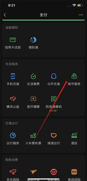 2、点击“城市服务”。