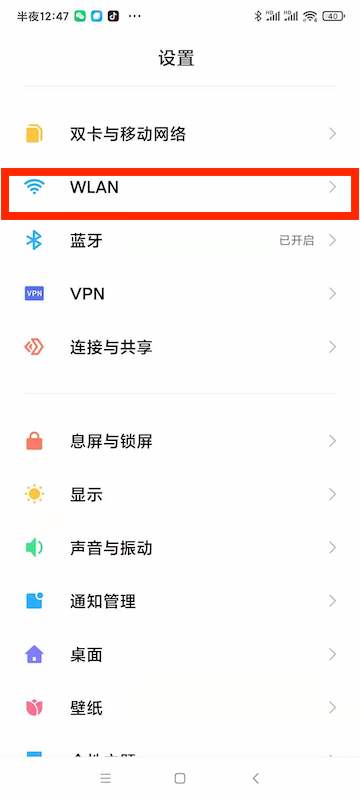 1、打开设置中的“WLAN”。