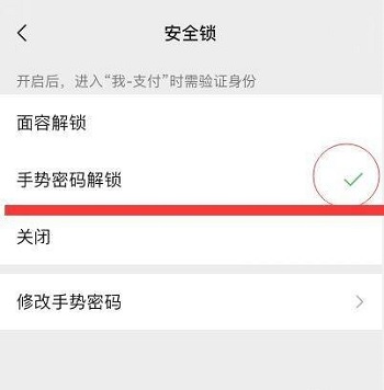 10、返回“安全锁”可以看到“手势密码解锁”后出现对勾,说明图案(手势)密码设置成功。