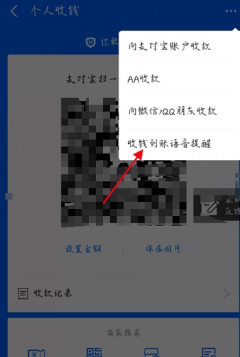2、点击个人收钱右上角的三个点,选择收钱到账语音提醒。