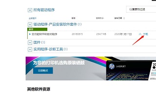5、点击对应打印机型号的驱动下载。下载页面中包含Windows系统32位和64位下载安装包,您可以点击“我的电脑”右键“属性”即可查看自己电脑的位数。然后选择相应的安装包点击下载即可。如图: