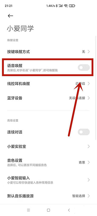 小爱同学唤醒功能怎么关闭