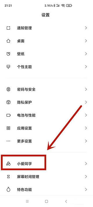 1、打开手机设置,点击“小爱同学”。如图: