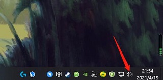 1、首先找到在电脑右下角有个音量一样的小图标,点击打开。如图: