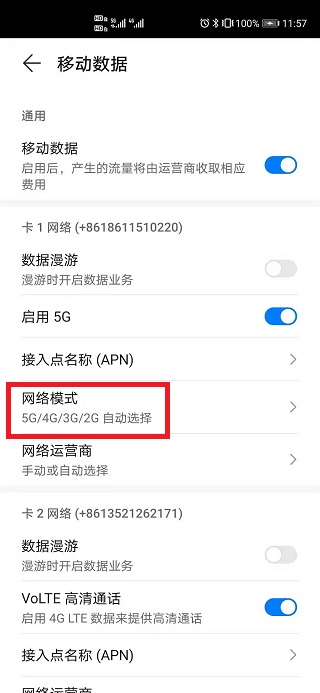一般5G手机上都有5G开关,以华为P40手机为例: