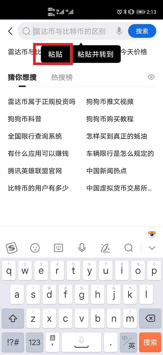 1、可以在浏览器网址输入框,长按输入框,点击“粘贴”打开。
