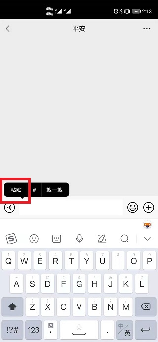 2、微信发送消息输入框里长按输入框,点击“粘贴”,发送后点击打开。