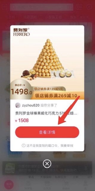 4、打开淘宝后弹窗会自动出现,点击查看详情即可打开宝贝详情。