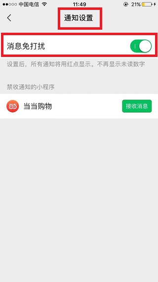 微信服务通知可以在微信消息中的服务通知页面关闭消息通知提醒,关闭后所有的消息通知都会用红点提示,不会再显示未读数字了。或者在服务通知页面的小程序消息处点击拒收通知。