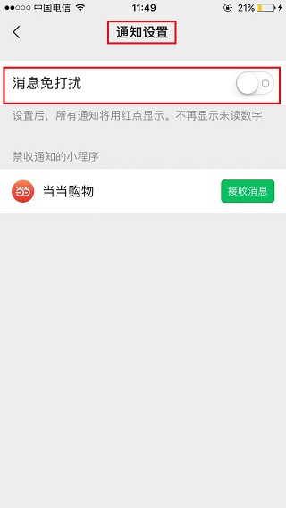 4、直接把消息通知提醒关闭,这样就不会显示消息提醒的未读数字了。