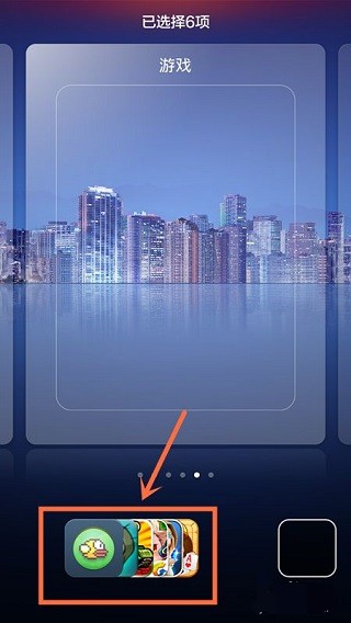 4、单击同类应用的图标,如单击所有游戏应用的图标,游戏应用的图标就会全部到了屏幕下方了,如果图标不在同一个页面,我们还可以左右滑动进行翻页来选择应用图标。如图: