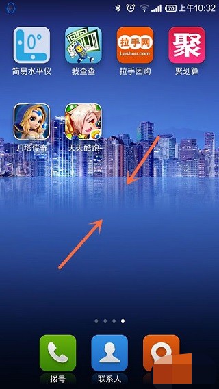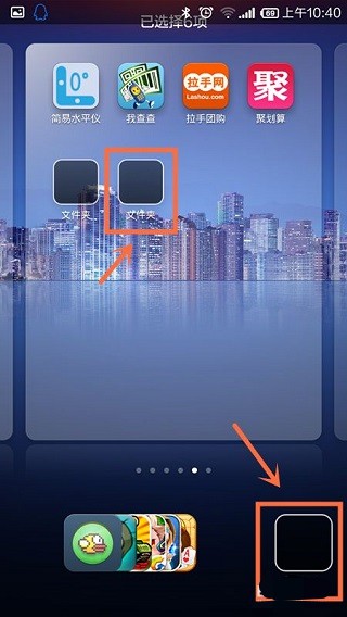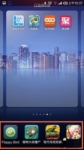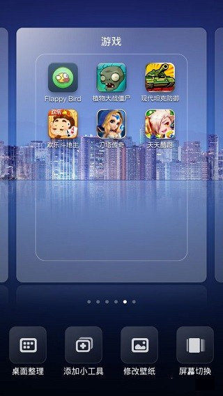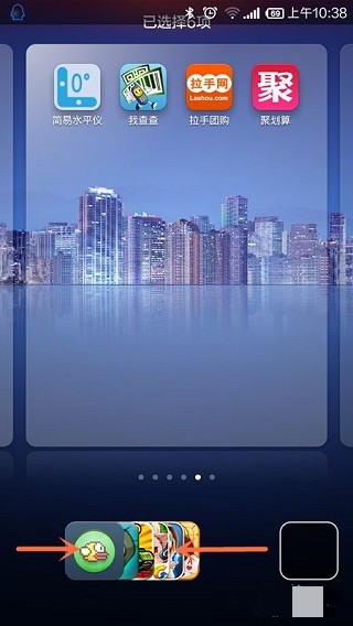 5、两个手指把下方的游戏应用图标往里一捏,全部图标就集中在一起了。如图: