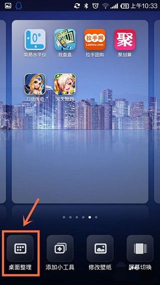3、进入小米手机桌面编辑模式后,选择桌面整理。如图: