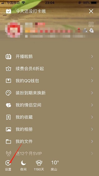 6、绑定QQ账号后,在手机QQ里找到设置并打开。如图: