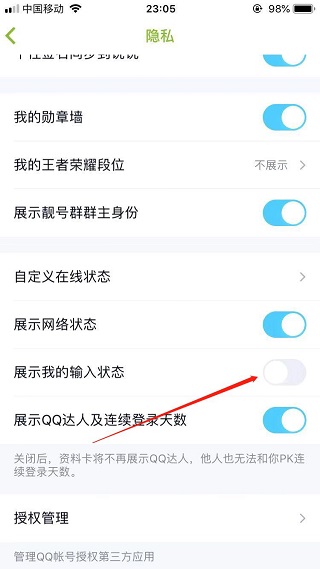 8、找到展示我的输入状态将其关闭,这样微信聊天时就不会出现输入状态了。如图: