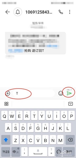 3、进入短信详情,可以看到回复“T”可以退订短信,点击短信编辑框。