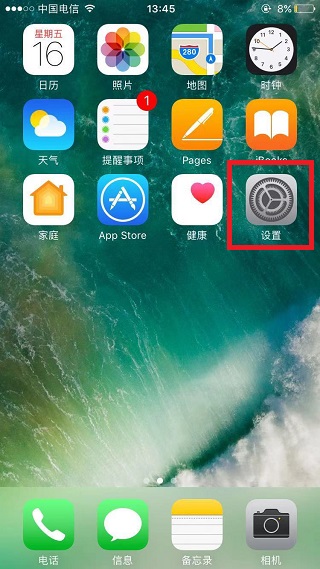 1、苹果还原网络设置首先要打开屏幕上面的设置按钮。