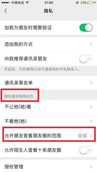 不让新加的人看以前的朋友圈