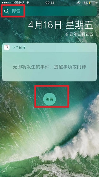 1、将手机桌面滑到最左边带有“搜索栏”的页面,点击“编辑”进入。