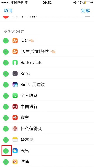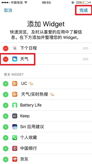 3、添加“天气”组件后点击右上角的“完成”即可。