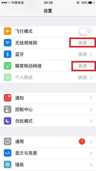 3、将手机的移动网络或者WiFi打开。