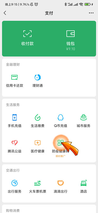 通行绿码可以在微信APP中领取,首先打开微信APP,点击右下角“我”的图标,然后点击“支付”选项,之后点击“防疫健康码”图标,最后点击页面底部的“查看防疫健康码”选项即可打开健康码。