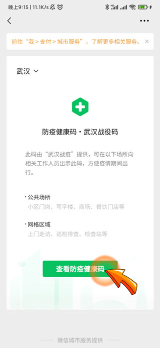 4、最后点击页面中的“查看防疫健康码”选项即可打开健康码。