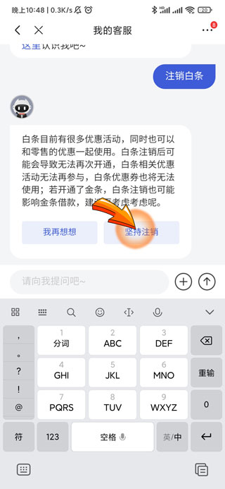 6、最后点击客服回信中的“坚持注销”选项即可。