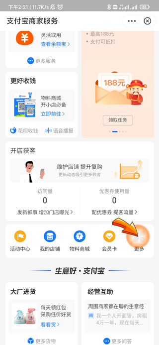 3、之后点击商家服务页面中的“更多”图标。