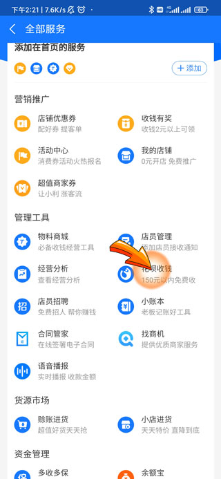 4、再点击管理工具中的“花呗收钱”选项。