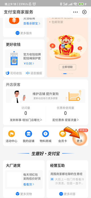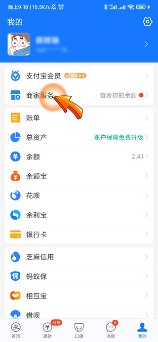 2、然后点击我的页面中的“商家服务”选项。