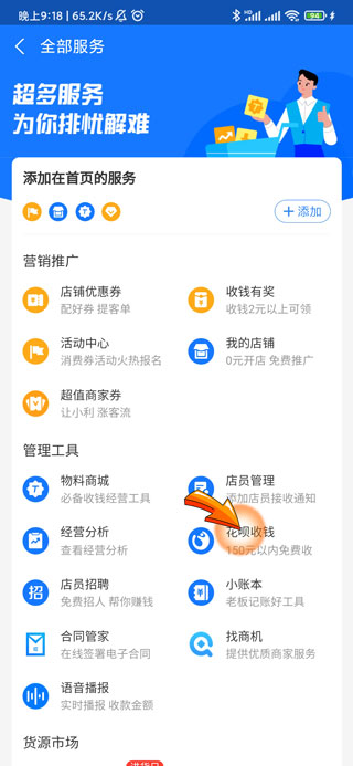 4、之后点击管理工具中的“花呗收钱”选项。
