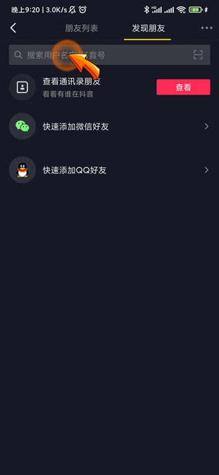 4、最后点击页面上方的“搜索栏”图标输入对方名称进行添加。
